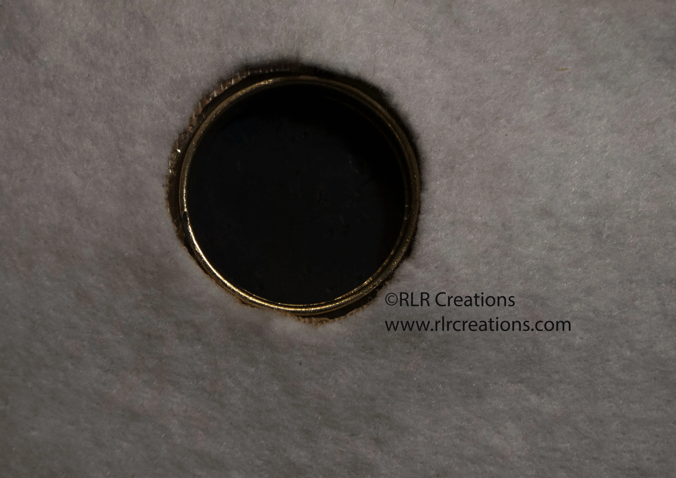 11. Align the front piece of your grommet with in the circle hole you cut and place a drop of glue in each screw hole.